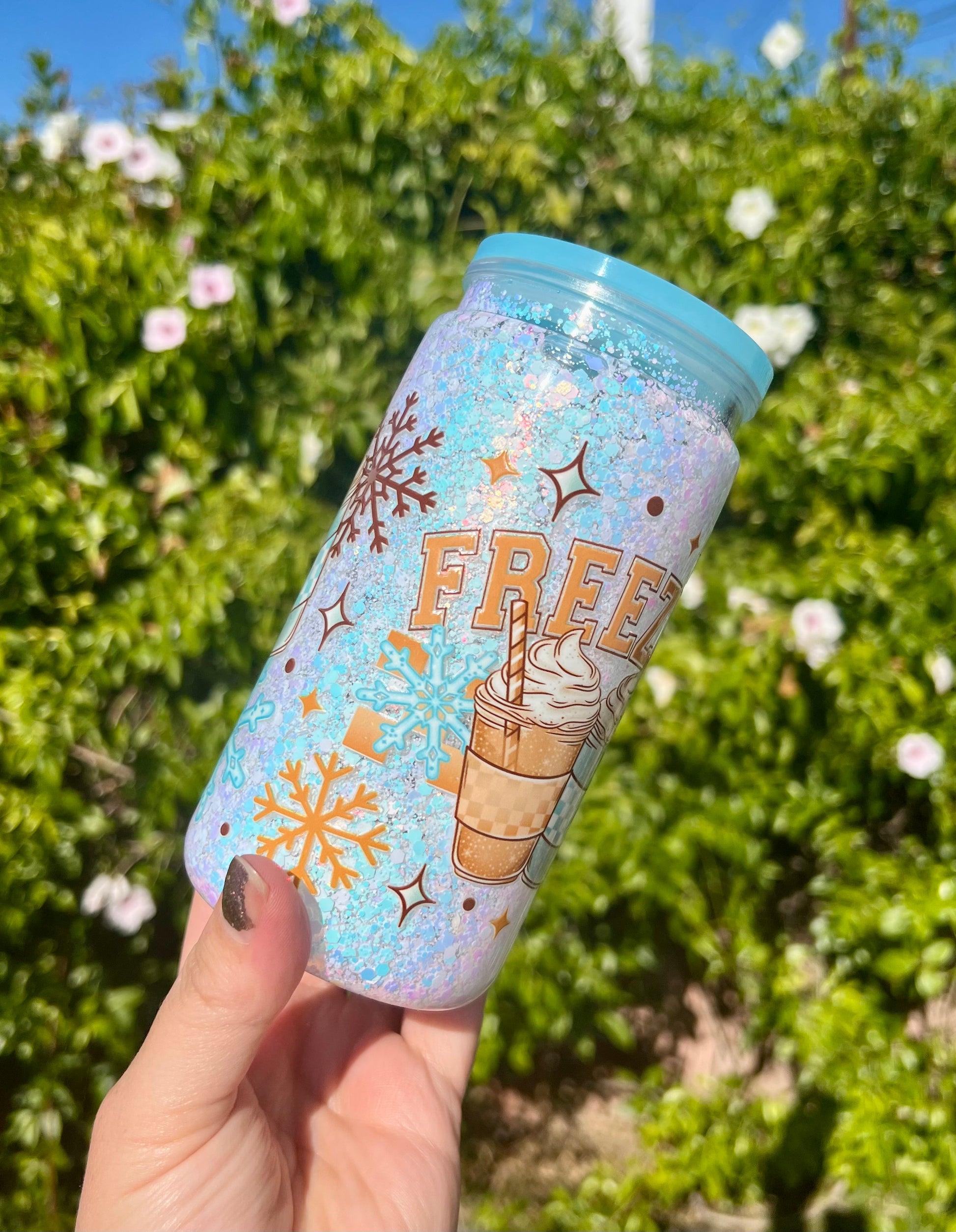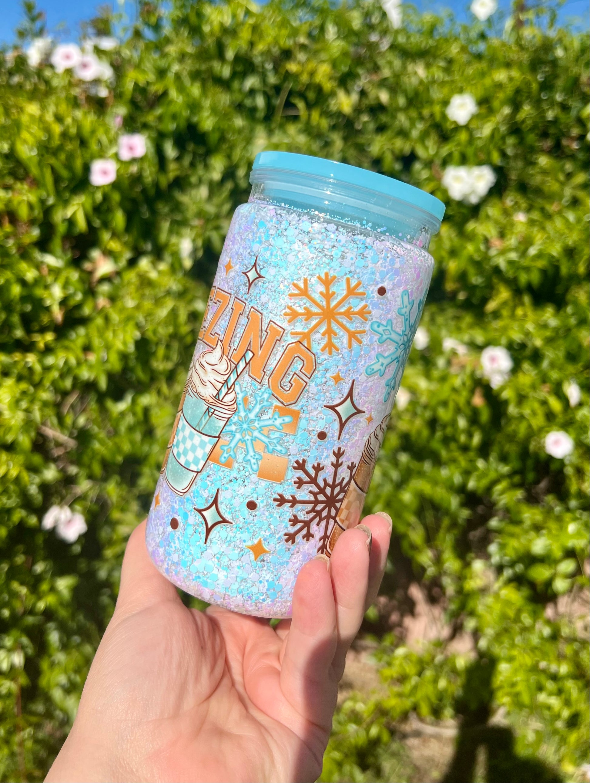 16 oz Acrylic Snow Globe FREEZING beverages Snowflake Tumbler