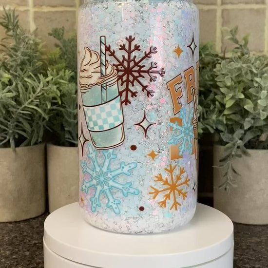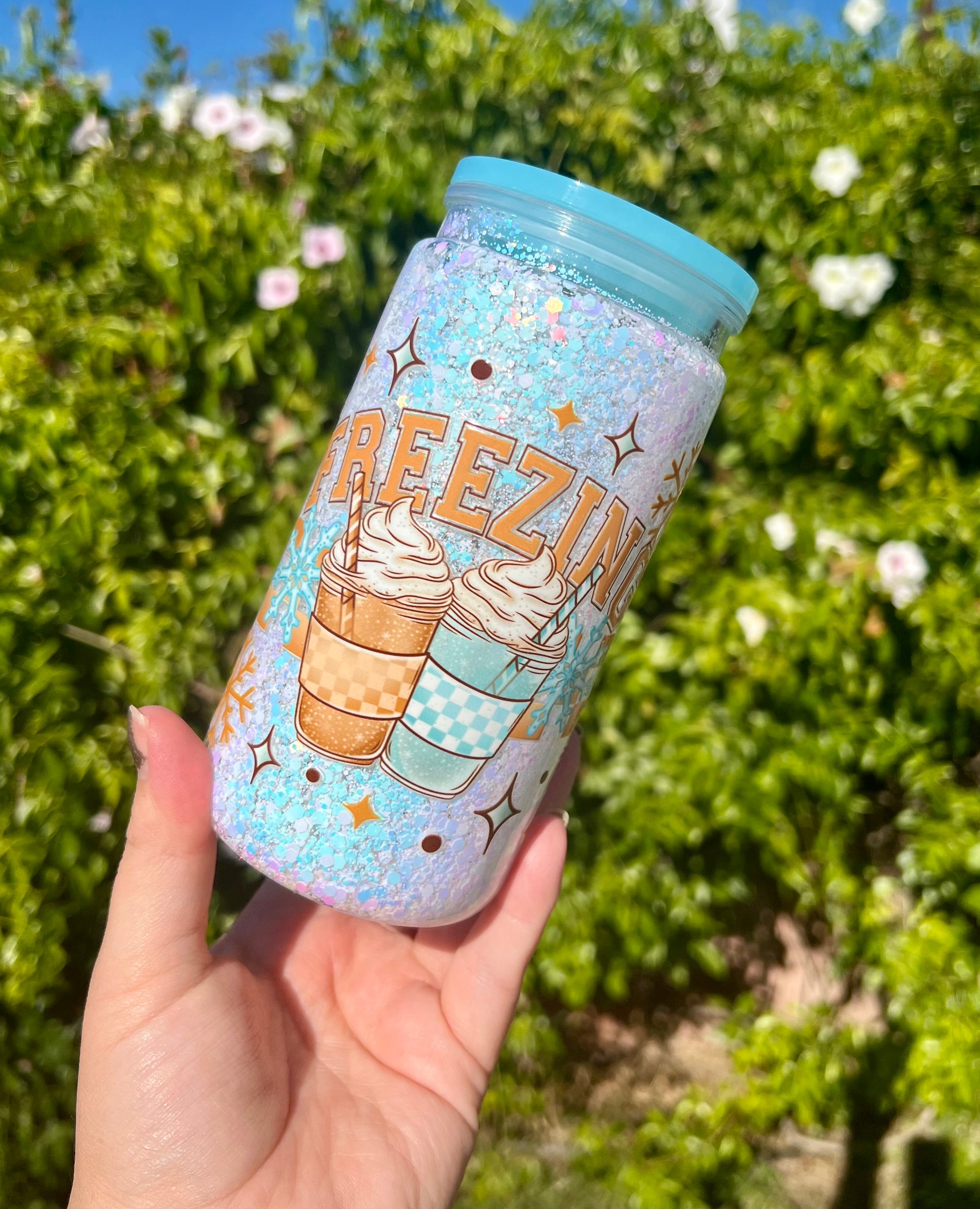 Bring sparkle and fun to your drinks with our cute custom 16 oz Acrylic Snow Globe Tumbler featuring a FREEZING beverages and snowflake decal! This playful yet practical tumbler combines eye-catching glitter movement with everyday functionality—perfect for keeping your favorite drinks cool while showing off your style.