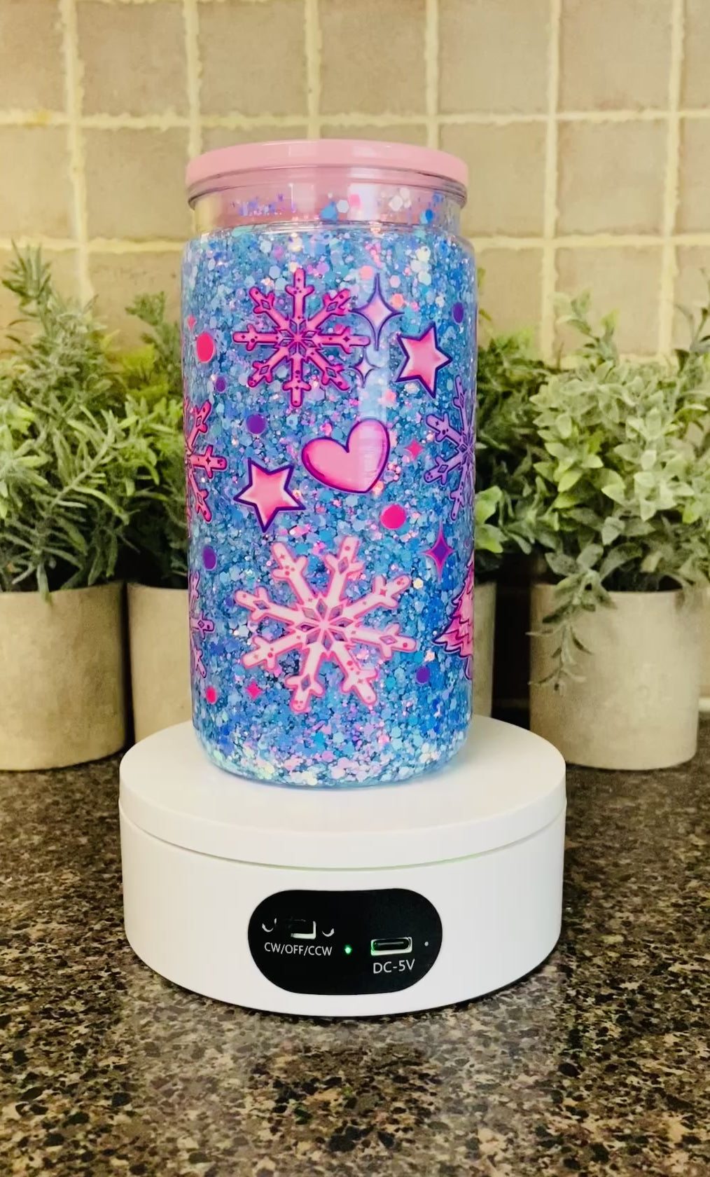 Bring sparkle and fun to your drinks with our cute custom 16 oz Acrylic Snow Globe Tumbler featuring a Holiday Pink Tree and Snowflakes decal! This playful yet practical tumbler combines eye-catching glitter movement with everyday functionality—perfect for keeping your favorite drinks cool while showing off your style.