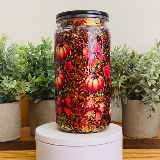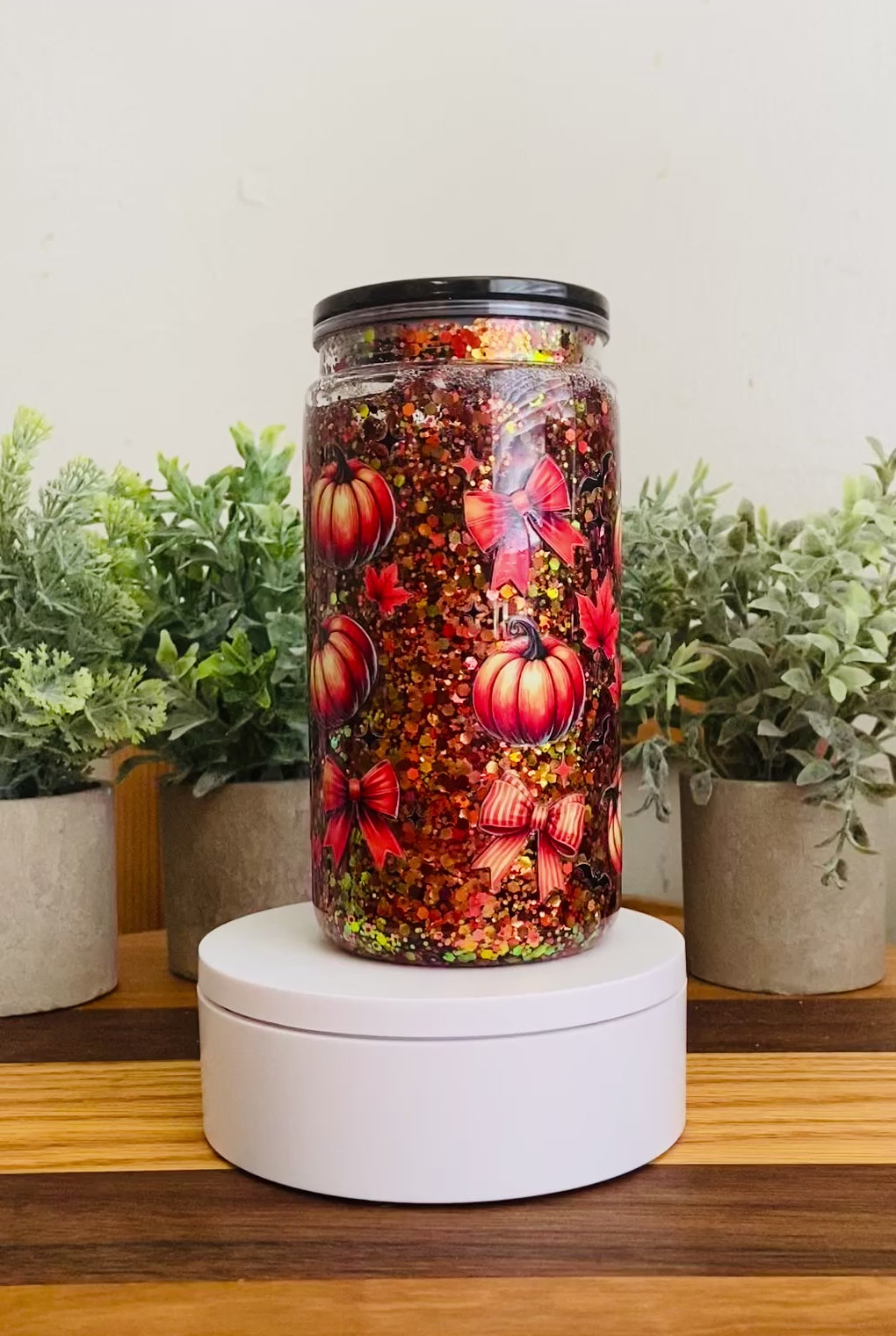 16 oz Acrylic Snow Globe Fall Vibes Glitter Tumbler