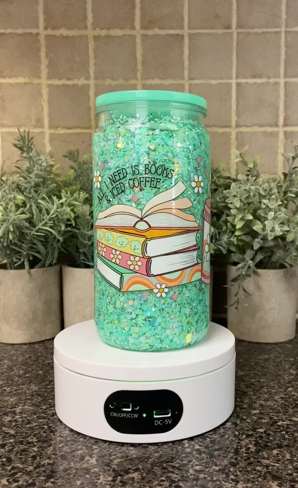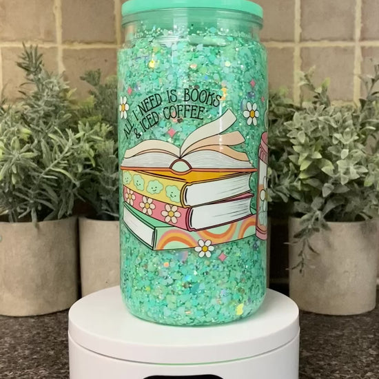 16 oz Acrylic Snow Globe Coffee & Books Glitter Tumbler
