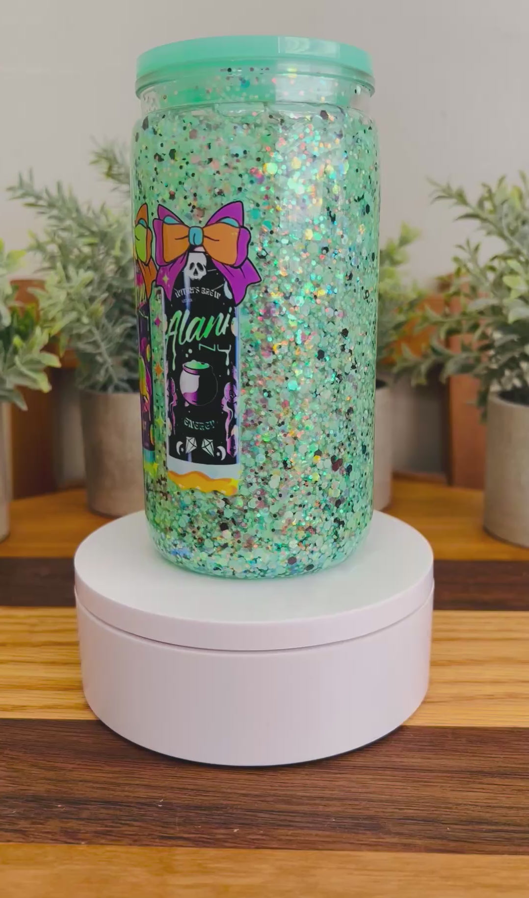 Bring sparkle and fun to your drinks with our 16 oz Acrylic Snow Globe Tumbler featuring a custom Alani decal! This playful yet practical tumbler combines eye-catching glitter movement with everyday functionality—perfect for keeping your favorite drinks cool while showing off your style.