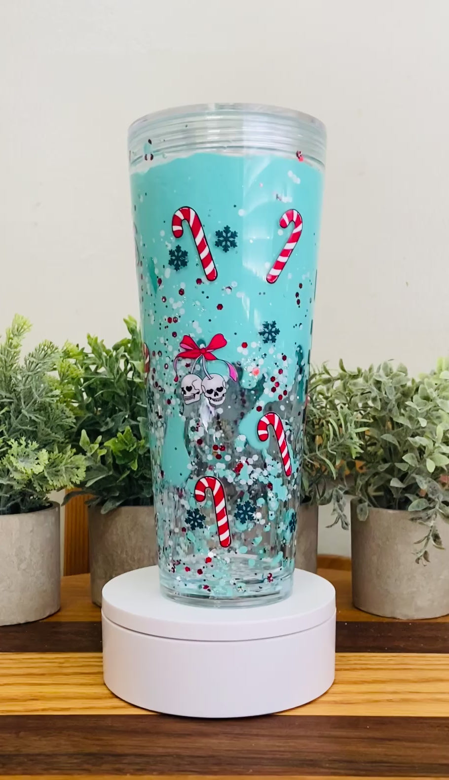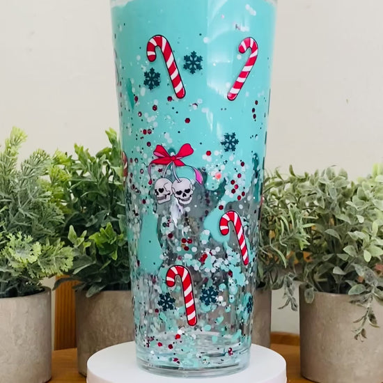 24 oz Acrylic Lava Snow Globe "Tis the Season" Skull Holiday Glitter Tumbler