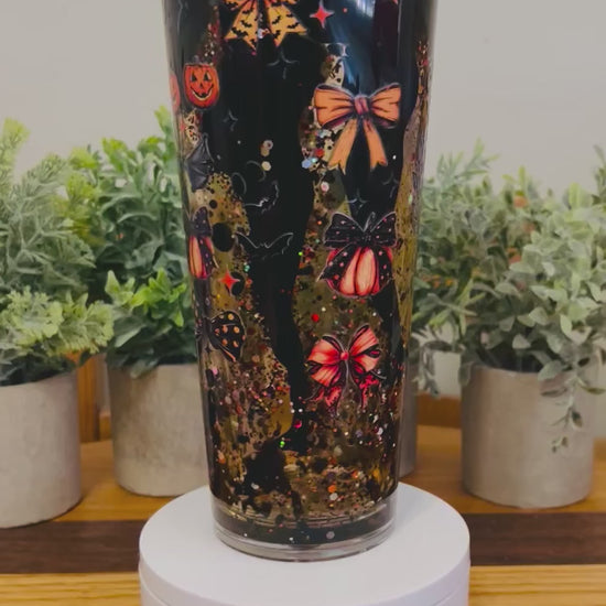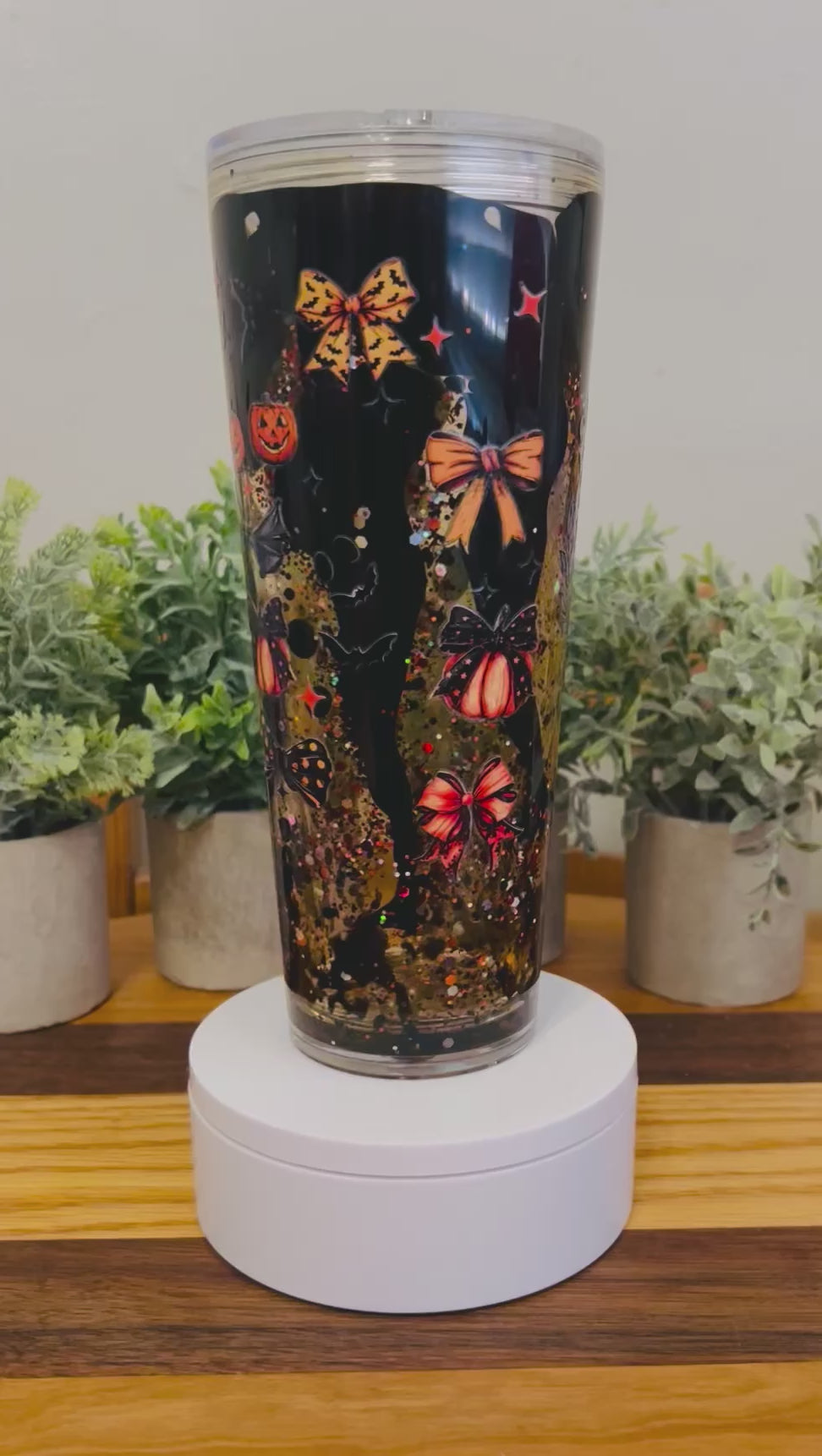 Bring sparkle and fun to your drinks with our 24 oz Acrylic Lava Style Snow Globe Tumbler featuring a cute Spooky Mama decal! This playful yet practical tumbler combines eye-catching glitter movement and fun flowing lava lamp style for everyday functionality—perfect for keeping your favorite drinks cool while showing off your style.