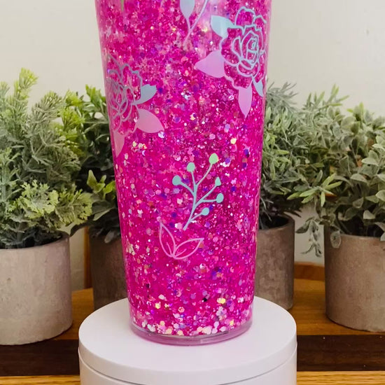 24 oz Acrylic Snow Globe Ombre Floral Glitter Tumbler