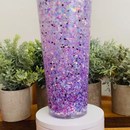 Bring sparkle and fun to your drinks with our 24 oz Acrylic Snow Globe Tumbler featuring a beautiful custom purple and blue glitter mix! This playful yet practical tumbler combines eye-catching glitter movement with everyday functionality—perfect for keeping your favorite drinks cool while showing off your style.