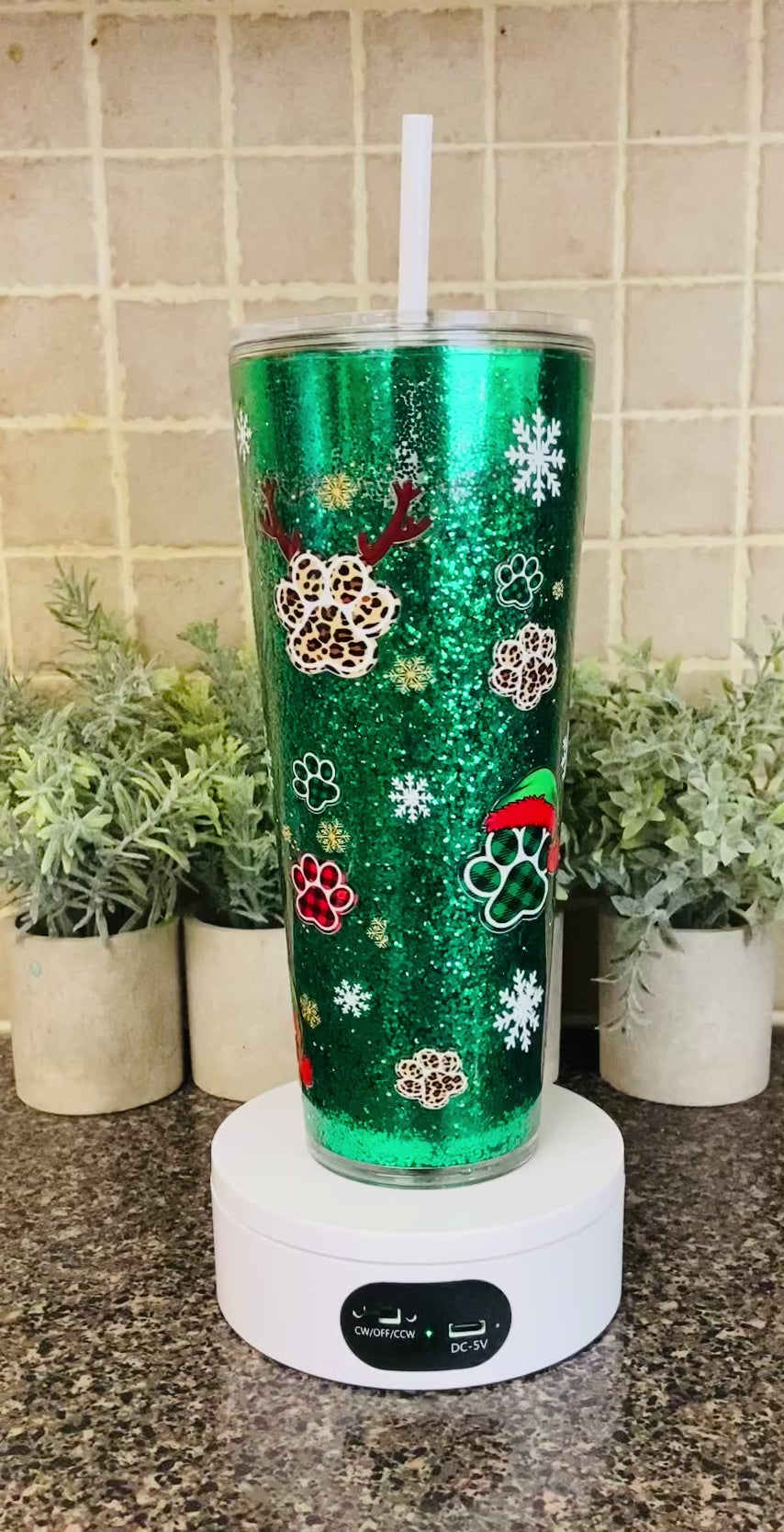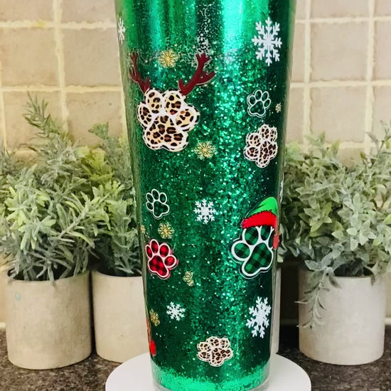 24 oz Acrylic Snow Globe Tumbler Holiday Paws